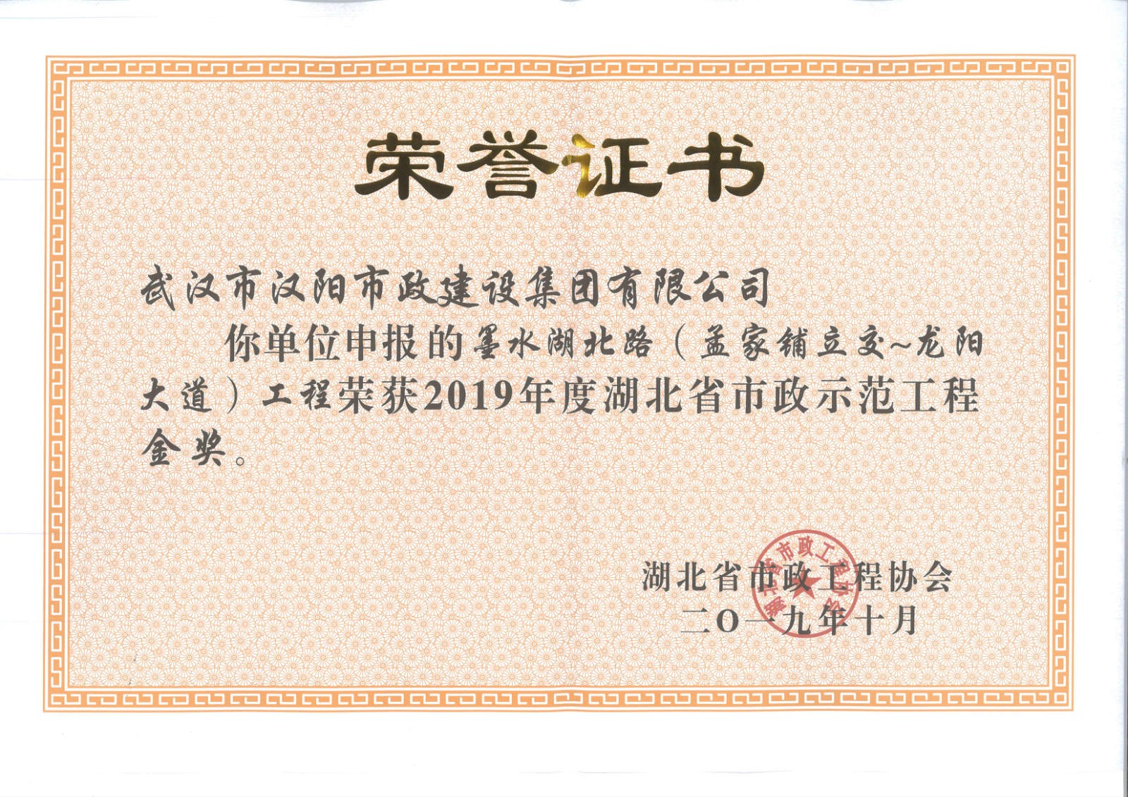 湖北省市政示范工程金獎(jiǎng)