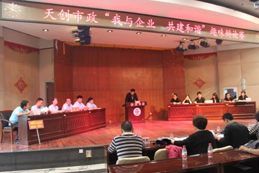 武漢天創(chuàng)市政建設(shè)工程有限公司組織舉辦“我與企業(yè) 共建和諧”趣味辯論賽,集團(tuán)公司陳穎書記、邢榮斌主任等領(lǐng)導(dǎo)到場(chǎng)觀看了比賽。