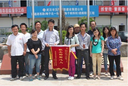 武漢天創(chuàng)市政建設(shè)工程有限公司行政部獲連通港西路項(xiàng)目部贈(zèng)予 “職工的貼心人”榮譽(yù)錦旗