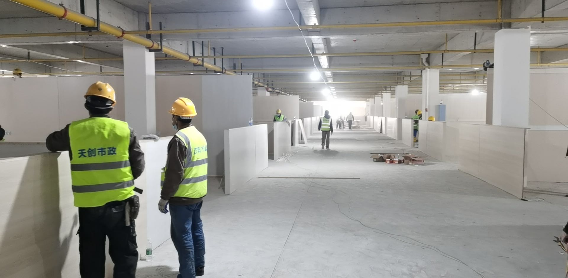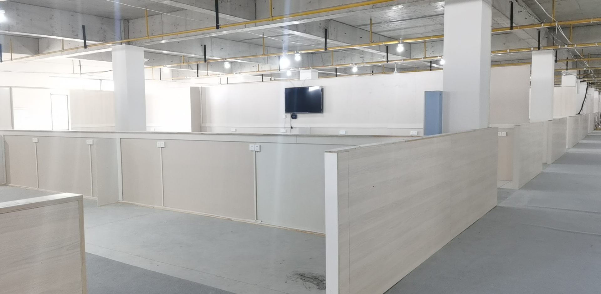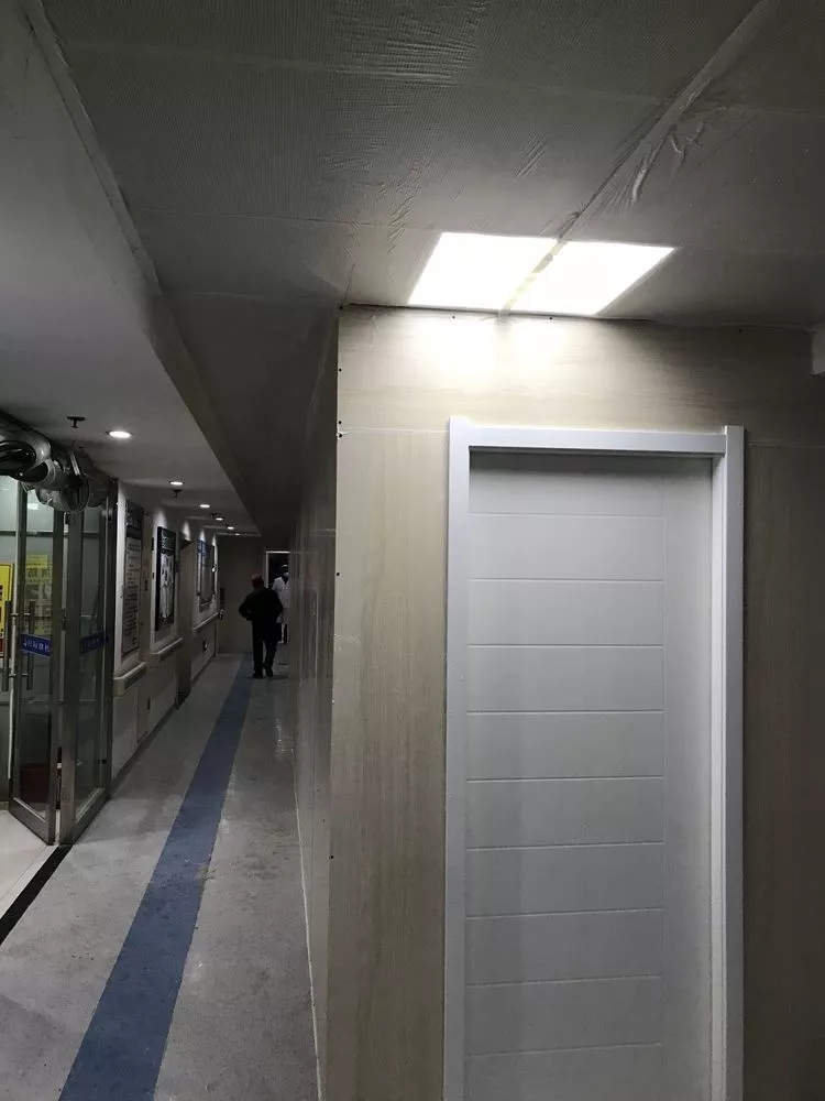 ? ? ? 為了順利完成任務(wù),2月16日清早,休息不足4小時(shí)的項(xiàng)目人員便趕忙開始進(jìn)行第一階段的施工,并于17日凌晨完成4層樓共計(jì)280張隔板、28扇門的施工,為確保第二階段施工能盡早開始,完工的4層樓當(dāng)晚便與院方進(jìn)行交接,經(jīng)驗(yàn)收合格。2月17日,病人正式入住。