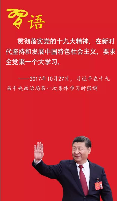 學(xué)習(xí)貫徹黨的十九大精神,就要認(rèn)真學(xué)習(xí)黨的十九大報(bào)告和新修訂的黨章,重中之重是要學(xué)習(xí)領(lǐng)會(huì)習(xí)近平新時(shí)代中國(guó)特色社會(huì)主義思想。