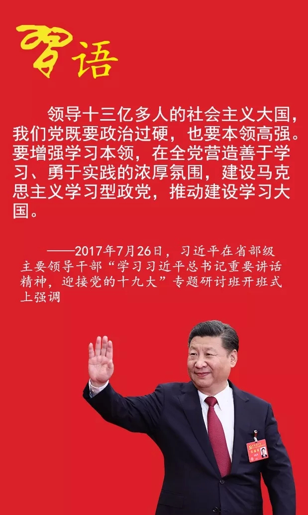 黨的十九大提出建設(shè)馬克思主義學(xué)習(xí)型政黨和學(xué)習(xí)大國的重大任務(wù),明確把增強(qiáng)學(xué)習(xí)本領(lǐng)放在八種執(zhí)政本領(lǐng)的第一位,進(jìn)一步凸顯了學(xué)習(xí)對共產(chǎn)黨人的重要性。黨員干部要增強(qiáng)學(xué)習(xí)本領(lǐng),首先要明確學(xué)習(xí)內(nèi)容。學(xué)什么?看看習(xí)近平總書記怎么說。