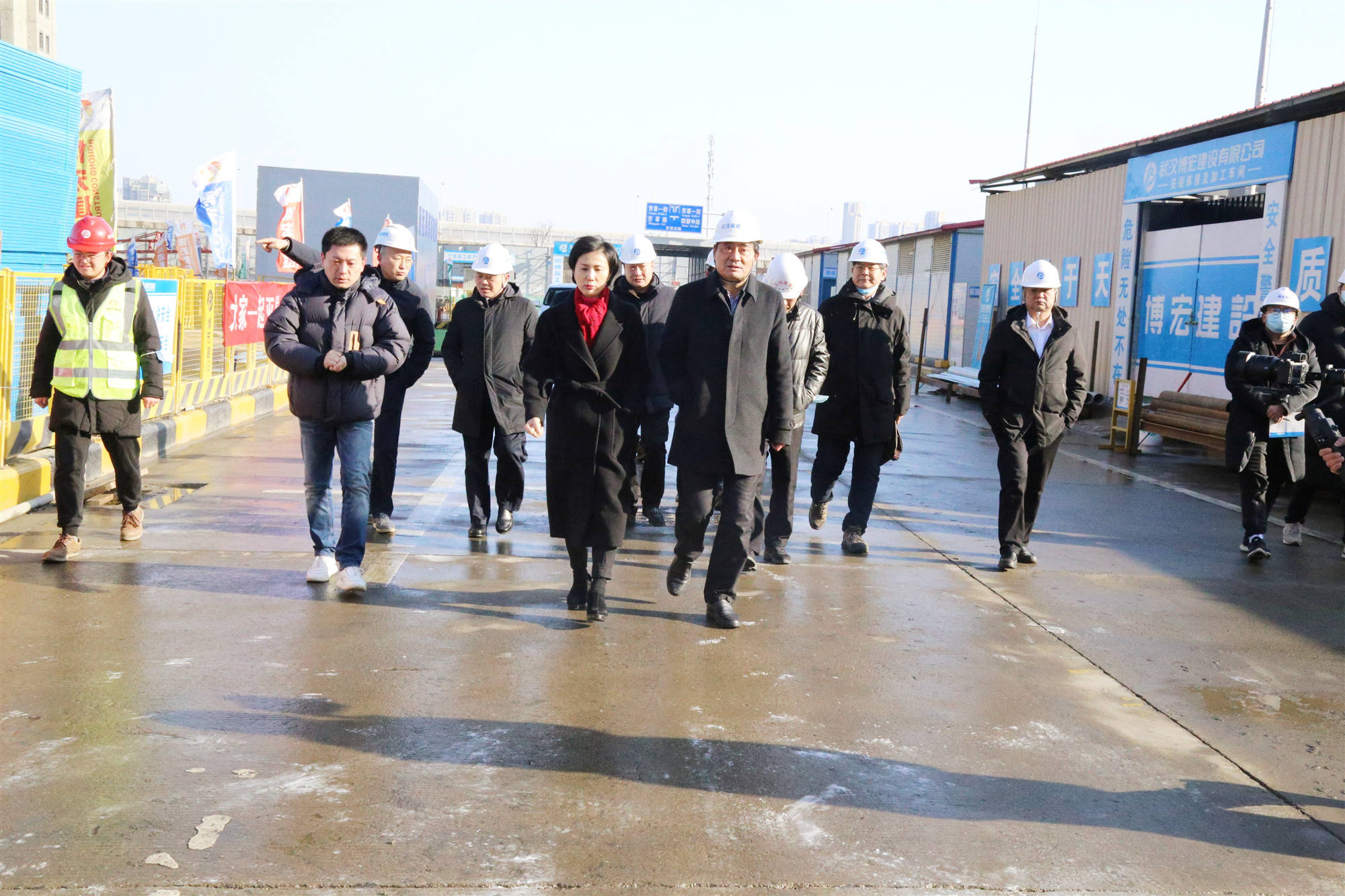 12月30日上午,由漢陽市政博宏公司承建的漢陽市政建設(shè)大廈迎來一次工地現(xiàn)場安全生產(chǎn)檢查,這是漢陽“工地革命”調(diào)研工作的第一站。武漢市城建局黨組書記、局長夏平,黨組成員、副局長榮先國,質(zhì)安處、建管處、安全站主要負(fù)責(zé)人;漢陽區(qū)委書記徐麗,區(qū)政府副區(qū)長蔡松,區(qū)建設(shè)局等相關(guān)單位負(fù)責(zé)人參加調(diào)研檢查,漢陽市政黨委書記、董事長嚴(yán)悌文等陪同調(diào)研。