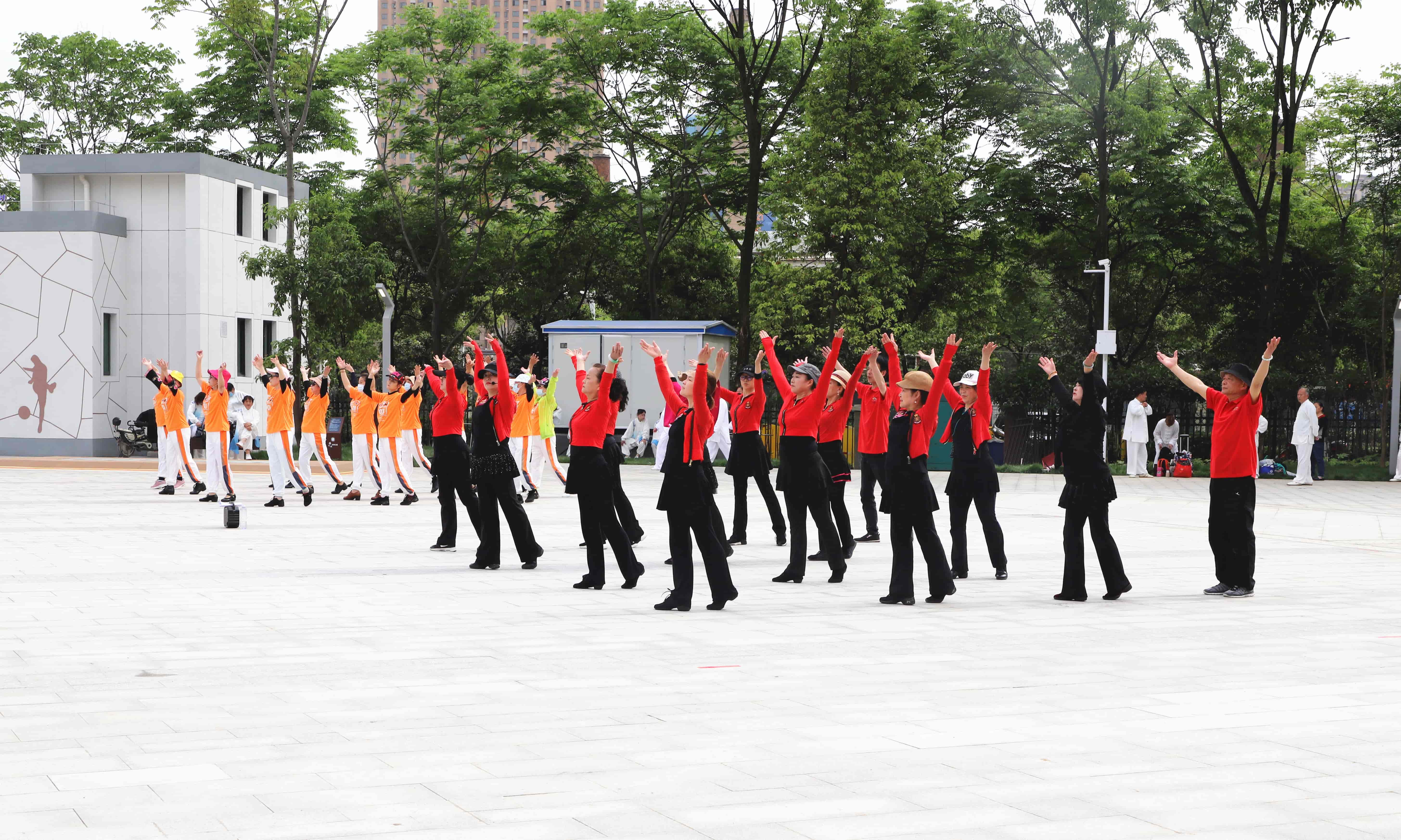 廣場(chǎng)舞隊(duì)在琴聲全民健身廣場(chǎng)表演