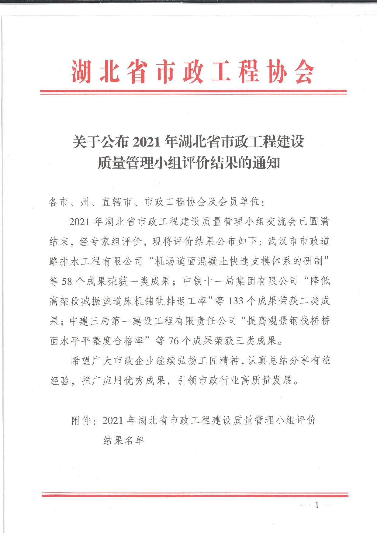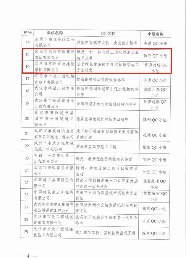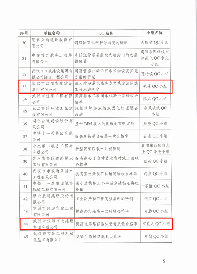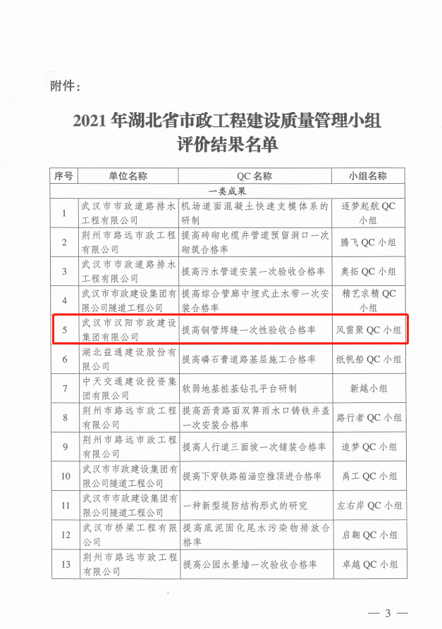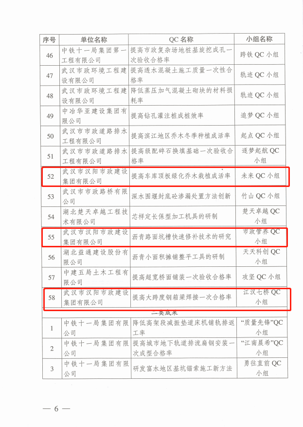 近期,湖北省市政工程協(xié)會(huì)傳來捷報(bào),漢陽市政選送的QC成果在激烈的角逐中脫穎而出,喜獲QC成果一等獎(jiǎng)8項(xiàng)、二等獎(jiǎng)18項(xiàng)、三等獎(jiǎng)6項(xiàng)。