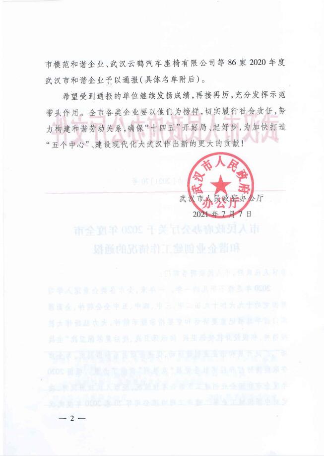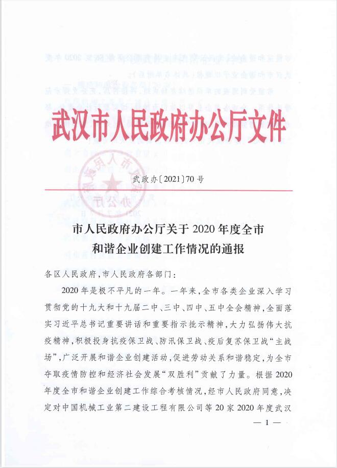 近日,根據(jù)2020年度武漢市和諧企業(yè)創(chuàng)建工作綜合考核情況,漢陽(yáng)市政博宏公司獲評(píng)“2020年度武漢市模范和諧企業(yè)”榮譽(yù)稱號(hào),琴臺(tái)公司獲評(píng)“2020年度武漢市和諧企業(yè)”榮譽(yù)稱號(hào)。此前,鐘鑫公司獲“2014年度武漢市和諧企業(yè)”,集團(tuán)公司獲“2016年度武漢市模范和諧企業(yè)”,致遠(yuǎn)公司獲“2017年度武漢市模范和諧企業(yè)”,天創(chuàng)公司獲“2019年度武漢市模范和諧企業(yè)”,五公司獲“2019年度武漢市和諧企業(yè)”。截至目前,漢陽(yáng)市政已有7家單位獲評(píng)“武漢市模范和諧企業(yè)”和“武漢市和諧企業(yè)”。