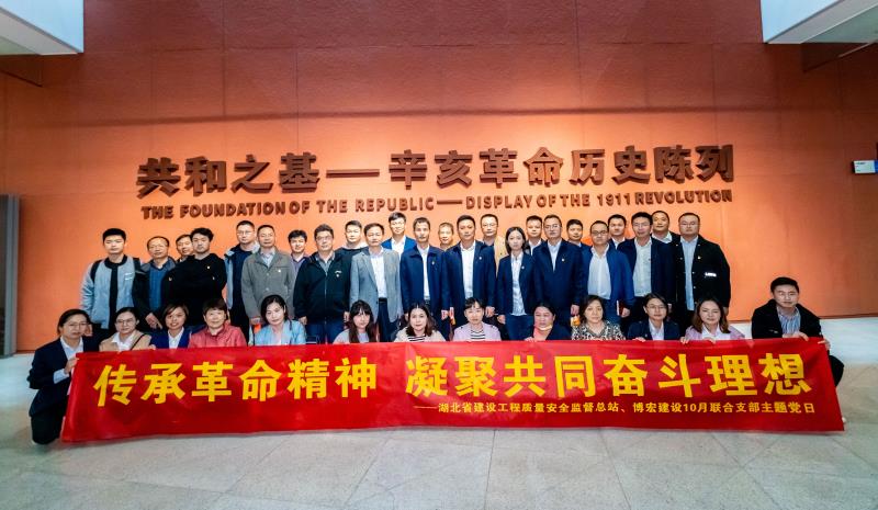 10月14日,湖北省建設工程質量安全監(jiān)督總站(簡稱“省質安總站”)與漢陽市政博宏公司聯(lián)合開展“傳承革命精神,凝聚共同奮斗理想”10月主題黨日活動。省質安總站黨支部書記、站長楊碧華,副站長丁建平、副站長徐建軍,漢陽市政博宏公司黨支部書記、董事長鄒勇,總經理蘇琦、黨支部副書記郭一清、副經理辛桂華等共計40余名黨員同志參與此次活動。