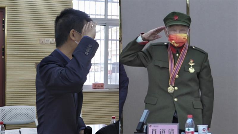 在熱烈的掌聲中,肖道清深情地講起自己在抗美援朝前線作戰(zhàn)的經(jīng)歷。16歲的他積極響應國家號召,從武漢奔赴東北,到有“人民空軍的搖籃”之稱的東北民主聯(lián)軍航空學校進行學習,光榮地成為一名空軍塔臺的指揮員,與戰(zhàn)友跨過鴨綠江,一起爬冰臥雪、在零下三十多度的戰(zhàn)場上,枕戈待旦、奮勇搏殺。說到最后,肖道清激動地舉起手,敬了一個標準的軍禮。