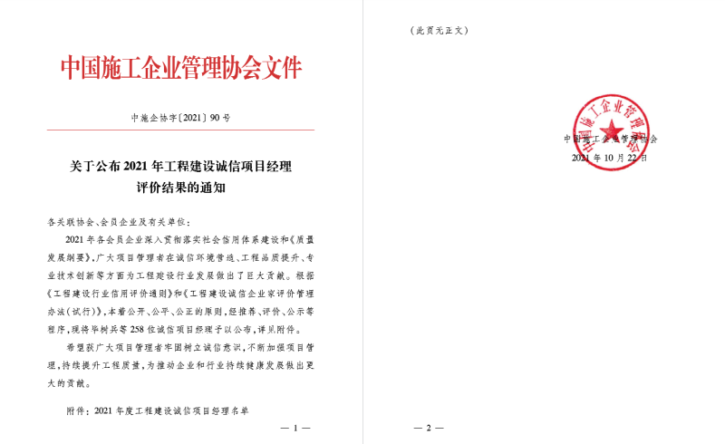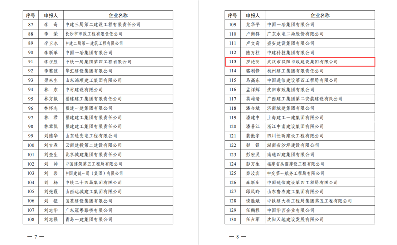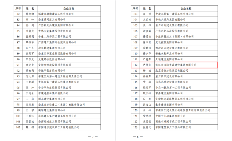 近日,中國(guó)施工企業(yè)管理協(xié)會(huì)傳來(lái)好消息,漢陽(yáng)市政黨委書(shū)記、董事長(zhǎng)嚴(yán)悌文榮獲“2021年工程建設(shè)誠(chéng)信企業(yè)家”,漢陽(yáng)市政七公司總工程師羅艷明榮獲“2021年工程建設(shè)誠(chéng)信項(xiàng)目經(jīng)理”。