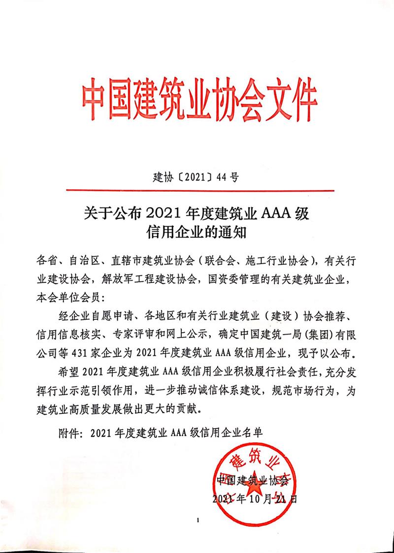 近日,中國建筑業(yè)協(xié)會認(rèn)定漢陽市政致遠公司、天創(chuàng)公司、博宏公司、鐘鑫公司為“2021年度建筑業(yè)AAA級信用企業(yè)”,3年后再次獲評,表明業(yè)內(nèi)對漢陽市政四家分子公司的信用建設(shè)成績持續(xù)給予高度肯定。