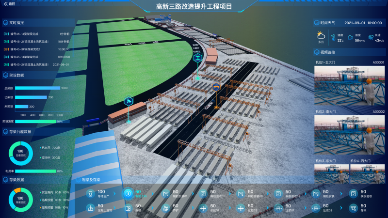項(xiàng)目以“人工智能應(yīng)用”為主,以“大數(shù)據(jù)智能化”為引領(lǐng),構(gòu)建“智慧交通、智慧橋梁、智慧水務(wù)、智慧管網(wǎng)、智慧路燈”五大智慧工程。項(xiàng)目以BIM+GIS技術(shù)打造的高精度數(shù)字模型為依托,采用預(yù)制裝配式連續(xù)結(jié)構(gòu)及智能機(jī)械化設(shè)備,讓智慧建造推動(dòng)項(xiàng)目建設(shè)智能、高效。項(xiàng)目創(chuàng)新應(yīng)用“項(xiàng)目協(xié)同管理平臺(tái)”、“智慧梁場(chǎng)系統(tǒng)”,延伸“項(xiàng)目信息化辦公平臺(tái)”,打造工地智慧運(yùn)維大腦。