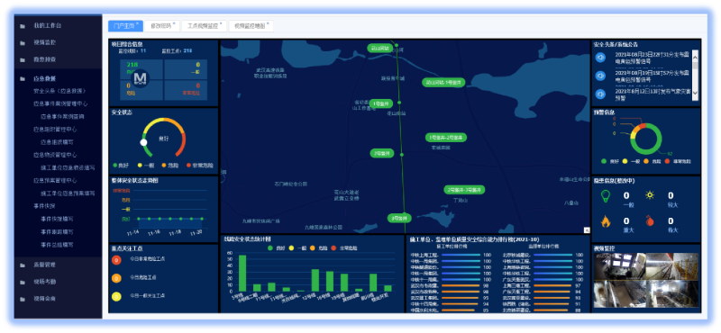 通過物聯(lián)網(wǎng)平臺(tái)將現(xiàn)場(chǎng)硬件數(shù)據(jù)實(shí)時(shí)同步到平臺(tái)中,展示現(xiàn)場(chǎng)環(huán)境PM2.5、噪聲、風(fēng)速、溫度、濕度等狀態(tài),生成各項(xiàng)環(huán)境指標(biāo)趨勢(shì)圖,自定義預(yù)警值,遠(yuǎn)程控制設(shè)備。項(xiàng)目內(nèi)部設(shè)有勞務(wù)班組人員實(shí)名制系統(tǒng),進(jìn)退場(chǎng)人員實(shí)時(shí)更新,并對(duì)接武漢市實(shí)名制管理平臺(tái),接受勞務(wù)人員進(jìn)場(chǎng)及上下班打卡監(jiān)管。利用手機(jī)端安全管理系統(tǒng),由責(zé)任人對(duì)問題進(jìn)行整改回復(fù),記錄人對(duì)問題進(jìn)行復(fù)核,使問題形成閉環(huán),自動(dòng)生成整改通知單、罰款單、安全日志,提高一線工作人員工作效率。基于施工現(xiàn)場(chǎng)虛擬危險(xiǎn)源特點(diǎn)讓體驗(yàn)者可以走進(jìn)真實(shí)的虛擬現(xiàn)實(shí)場(chǎng)景中,通過沉浸式和互動(dòng)式體驗(yàn)讓體驗(yàn)者得到更深刻的安全意識(shí)教育,提升全員生產(chǎn)安全意識(shí)水平,具有科技應(yīng)用水平高、培訓(xùn)成效好、安裝部署快,使用成本低等顯著特點(diǎn)。與建設(shè)單位、監(jiān)理單位協(xié)同使用武漢地鐵質(zhì)量安全管理平臺(tái),實(shí)現(xiàn)施工現(xiàn)場(chǎng)視頻監(jiān)控、隱患排查、應(yīng)急管理、質(zhì)量管理及視頻會(huì)商一體化協(xié)同管理。