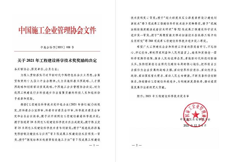 本次獲得國家級科學(xué)技術(shù)獎項的認定,是對公司長期堅持重視科技研發(fā)工作、致力于從實際生產(chǎn)需求出發(fā)、解決項目施工各項技術(shù)難題的高度肯定!公司也將依托勞模創(chuàng)新工作室的專業(yè)研發(fā)平臺和技術(shù)創(chuàng)新人才,繼續(xù)堅持把科技自立自強作為企業(yè)發(fā)展的戰(zhàn)略支撐,不斷完善科技創(chuàng)新體系,持續(xù)推動工程建設(shè)科技進步,為構(gòu)建行業(yè)新發(fā)展格局、推動行業(yè)高質(zhì)量發(fā)展作出新貢獻。