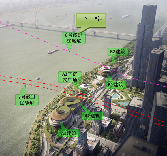 筏板、承臺、樁與區(qū)間隧道空間位置關(guān)系圖(地鐵7號線、8號線)