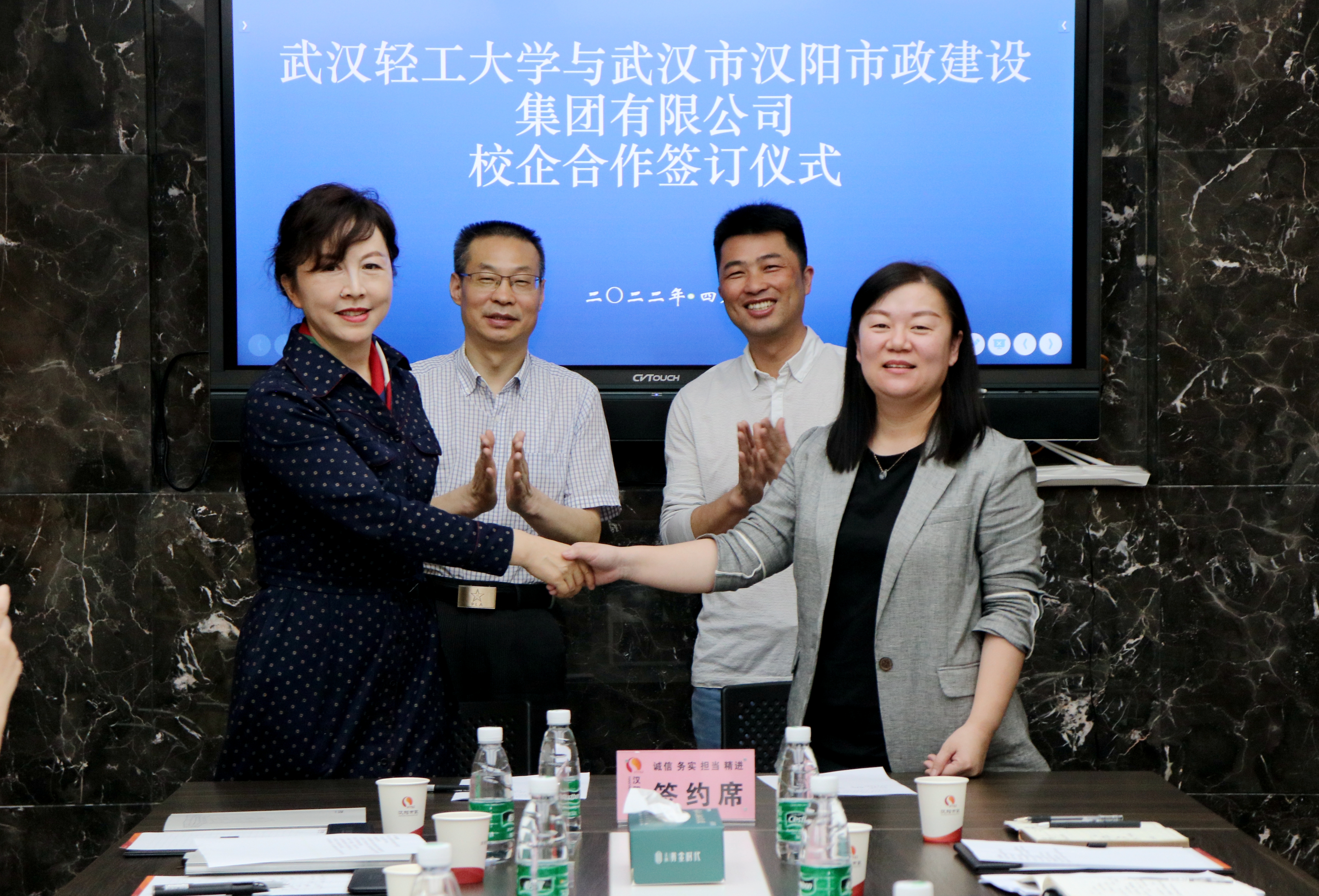 4月28日上午,漢陽市政與武漢輕工大學(xué)校企合作協(xié)議簽訂儀式在集團13樓會議室順利舉行。武漢輕工大學(xué)紀委書記、省監(jiān)委駐校監(jiān)察專員沙順利,土建學(xué)院黨委書記李靜,漢陽市政總經(jīng)理王智高、黨委副書記冷雪等出席簽約儀式。