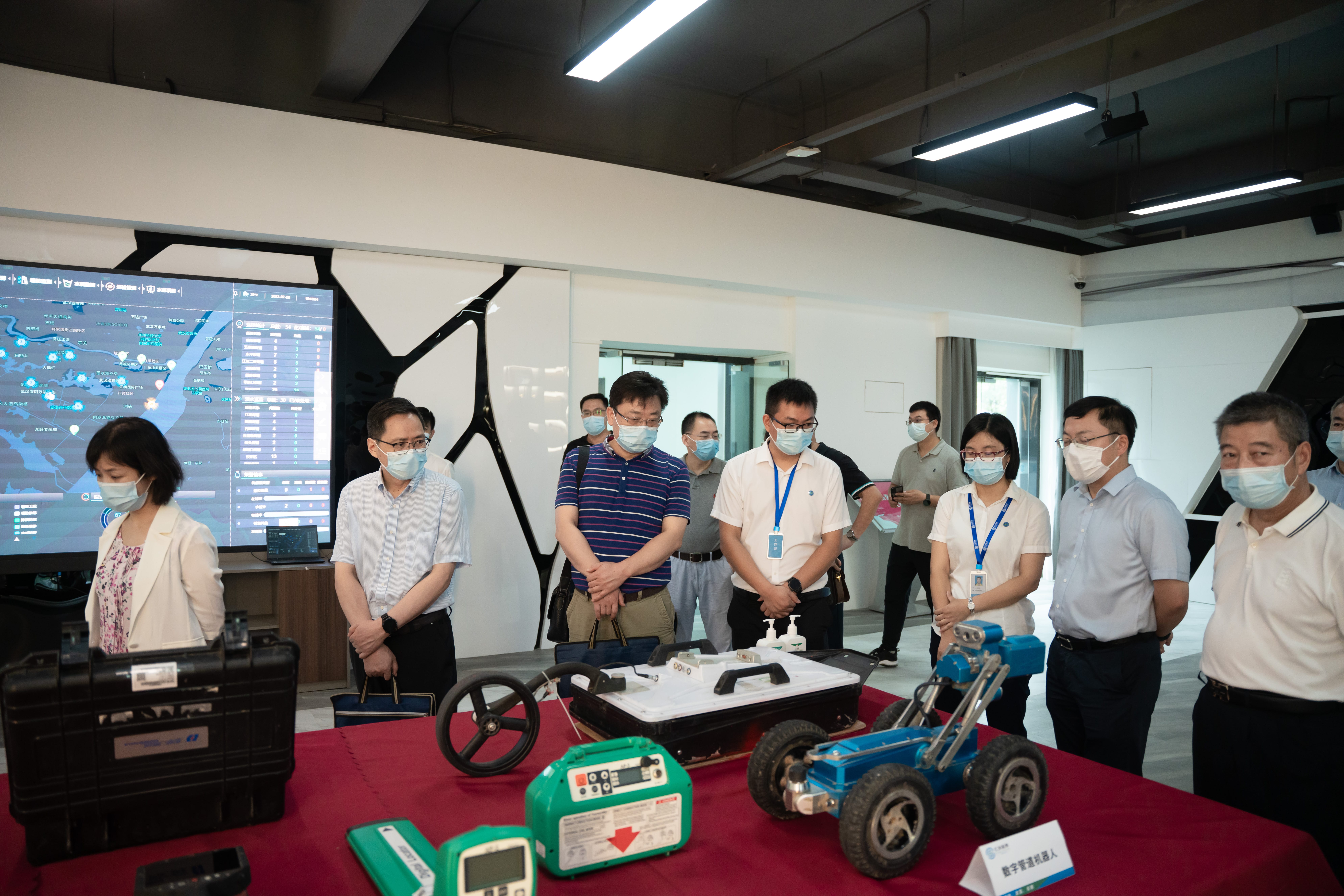 調研組一行首先參觀了檢測公司的實驗區(qū),在講解員的介紹下了解了道路綜合檢測車、三維雷達探測車以及落錘車的基本工作原理。隨后,調研組體驗了房屋巡查體感操作系統(tǒng),近距離參觀了數(shù)字管道機器人、TZ12全站儀、經(jīng)緯 M300 RTK、禪思P1等一批高新設備。漢陽市政檢測公司始終聚焦智能化檢測,大力引進核心技術和高新人才,擁有一大批先進的檢測設施和完備的資質參數(shù)。十四五以來,堅定不移地貫徹落實十四五規(guī)劃精神,將提質增效作為企業(yè)發(fā)展首要目標,在今年還取得了湖北省“專精特新”企業(yè)稱號。