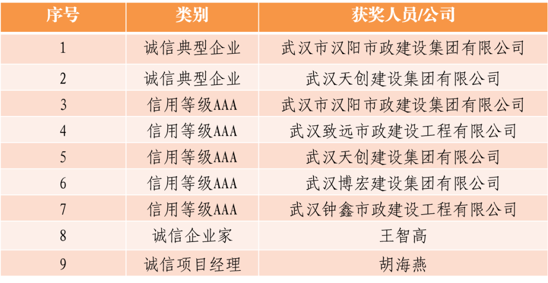 近日,中施企協(xié)發(fā)布關(guān)于信用等級評定和誠信企業(yè)、誠信企業(yè)家等評定的公示,漢陽市政及漢陽市政致遠(yuǎn)建設(shè)、天創(chuàng)建設(shè)、博宏建設(shè)、鐘鑫建設(shè)保留“AAA誠信企業(yè)”榮譽(yù)稱號,漢陽市政及天創(chuàng)建設(shè)獲評典型誠信企業(yè),漢陽市政總經(jīng)理王智高獲評誠信企業(yè)家,漢陽市政胡海燕獲評誠信項(xiàng)目經(jīng)理。