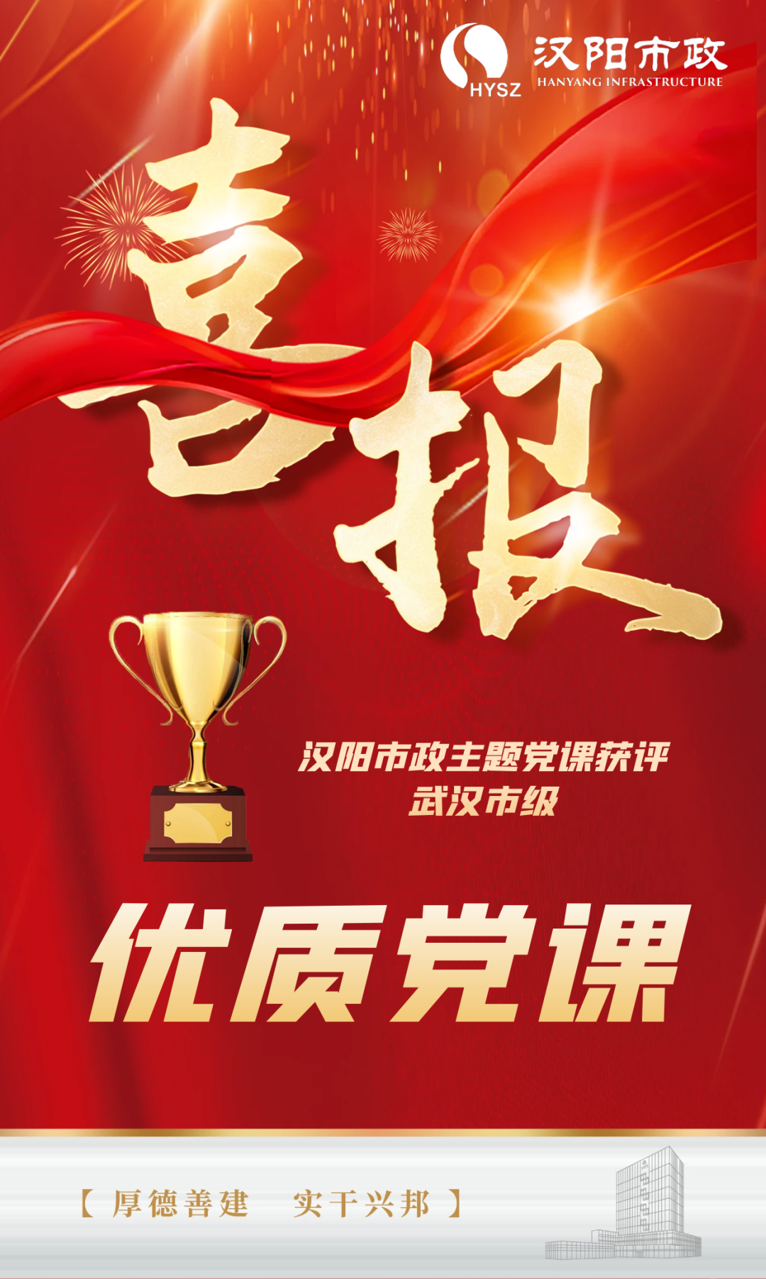 近日,武漢市委組織部發(fā)布了《關于2022年度全市“黨課開講啦”暨“主題黨課我來講”活動市級優(yōu)質黨課的通報》,對50場市級優(yōu)質黨課進行表彰。漢陽市政選送的《賡續(xù)紅色血脈 扛起時代擔當》在全市推薦申報的30200場黨課中脫穎而出,榮獲優(yōu)質黨課優(yōu)秀獎!