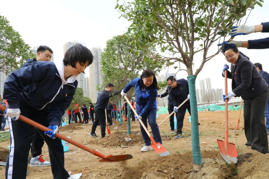 最后,植樹(shù)環(huán)節(jié),大家紛紛戴上志愿者袖章、馬甲及帽子,進(jìn)行植樹(shù)前的準(zhǔn)備工作。“咔咔咔……”,現(xiàn)場(chǎng)植樹(shù)鏟土的聲音此起彼伏,大家在這里揮灑汗水,種下一片青翠,系掛祝福書(shū)簽,許下更美好的未來(lái)。