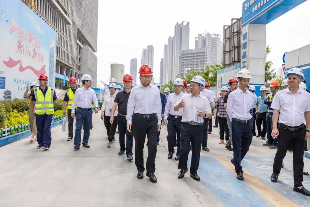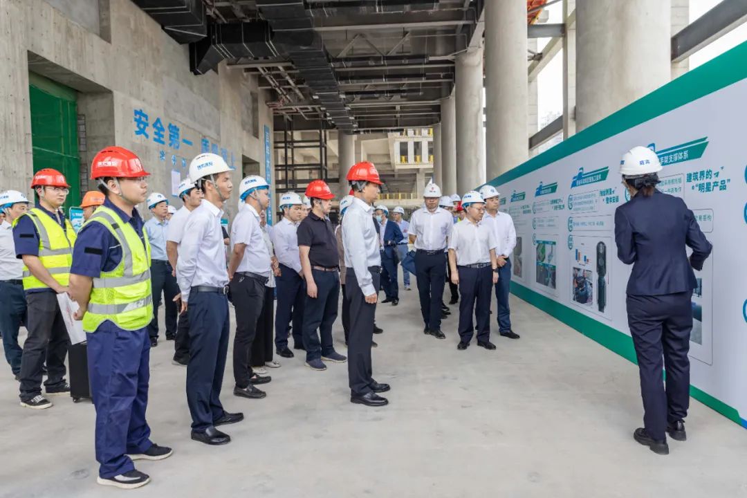 劉雪榮一行實地考察了中南科研設(shè)計中心施工現(xiàn)場,通過講解互動和實地觀摩,全方位了解了項目在新技術(shù)應(yīng)用、安全質(zhì)量管控、標準化建設(shè)、智能化管理等方面的亮點與成效。調(diào)研組對施工現(xiàn)場BIM信息技術(shù)應(yīng)用、構(gòu)件二維碼上墻等創(chuàng)新舉措表示認可,充分肯定項目通過物聯(lián)網(wǎng)設(shè)備實時采集環(huán)境數(shù)據(jù),太陽能供電系統(tǒng)、盤扣支架通道,消防水系統(tǒng)與照明系統(tǒng)永臨結(jié)合等環(huán)保舉措,希望項目團隊繼續(xù)攻堅克難,為推動武漢打造“工程設(shè)計之都”作出更大貢獻。