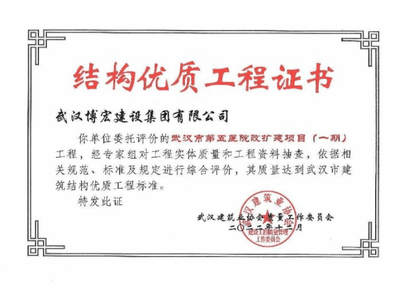 武漢市第五醫(yī)院改擴(kuò)建項(xiàng)目榮譽(yù)