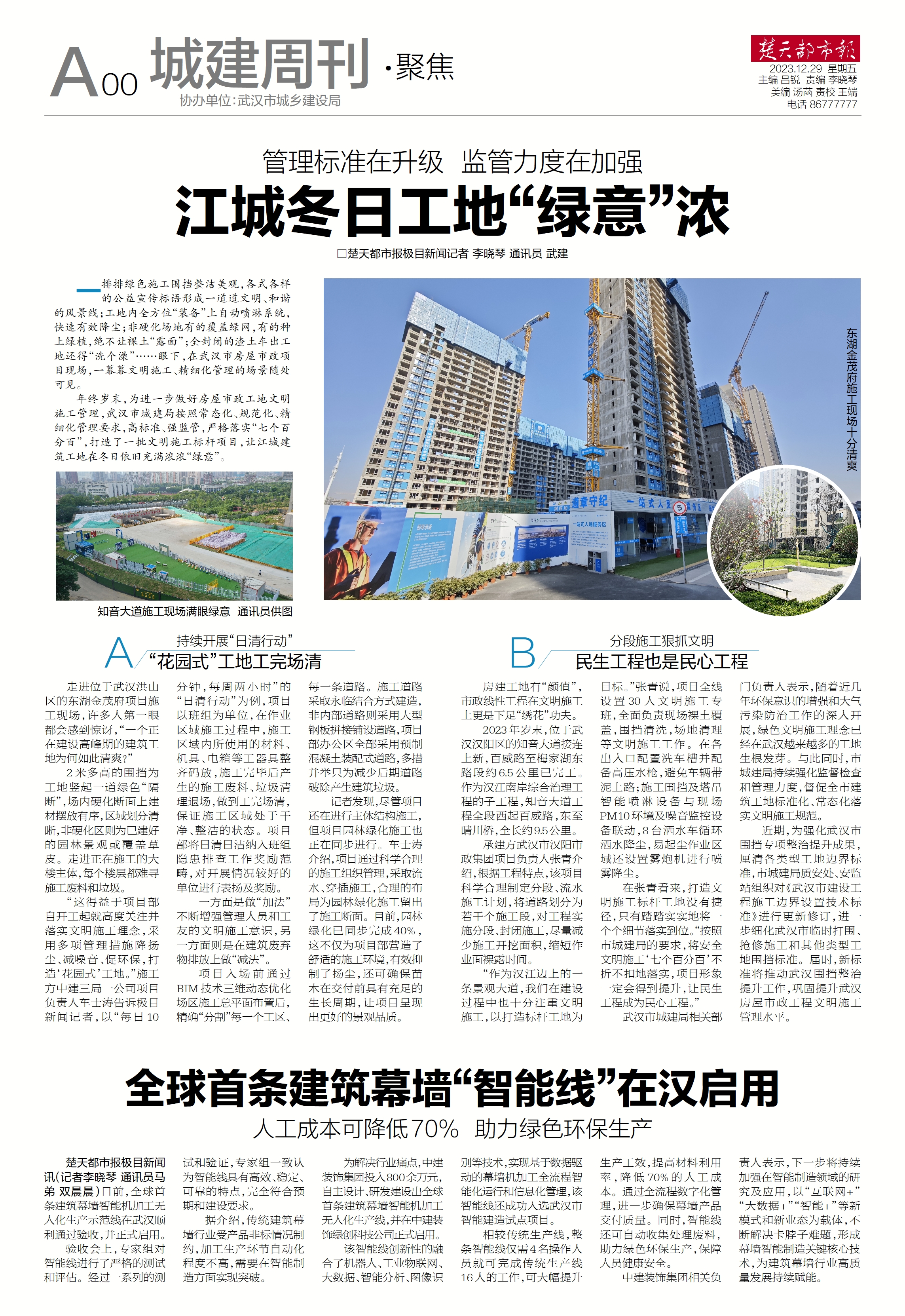 楚天都市報(bào)推出《管理標(biāo)準(zhǔn)在升級(jí) 監(jiān)管力度在加強(qiáng) 江城冬日工地“綠意”濃》專版報(bào)道。