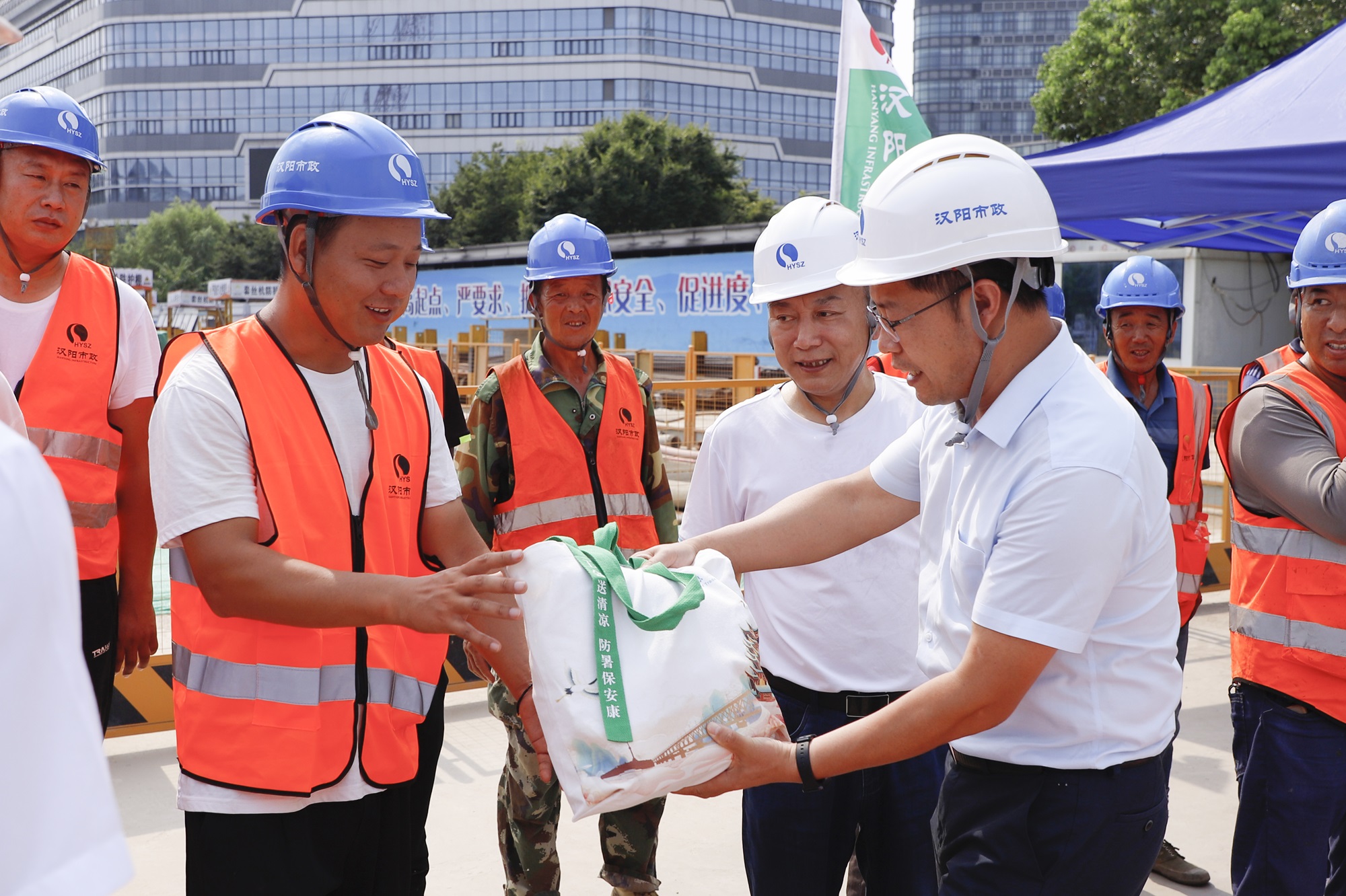 7月24日下午,武漢市總工會副主席劉斌,社聯(lián)部處長鄧向軍,漢陽區(qū)委副書記、區(qū)政法委書記黃江波,區(qū)人大常委會副主任、區(qū)總工會主席周立強,區(qū)總工會常務副主席李鐘,區(qū)總工會副主席陳新樹一行來到11號線四期土建工程第3標段項目現(xiàn)場開展“工會送清涼”高溫慰問活動,為高溫下堅守一線的建設(shè)者們送去了礦泉水、鹽汽水、藿香正氣水等防暑降溫物資。漢陽市政黨委委員、總經(jīng)理王智高,黨委副書記、紀委書記冷雪陪同慰問。
