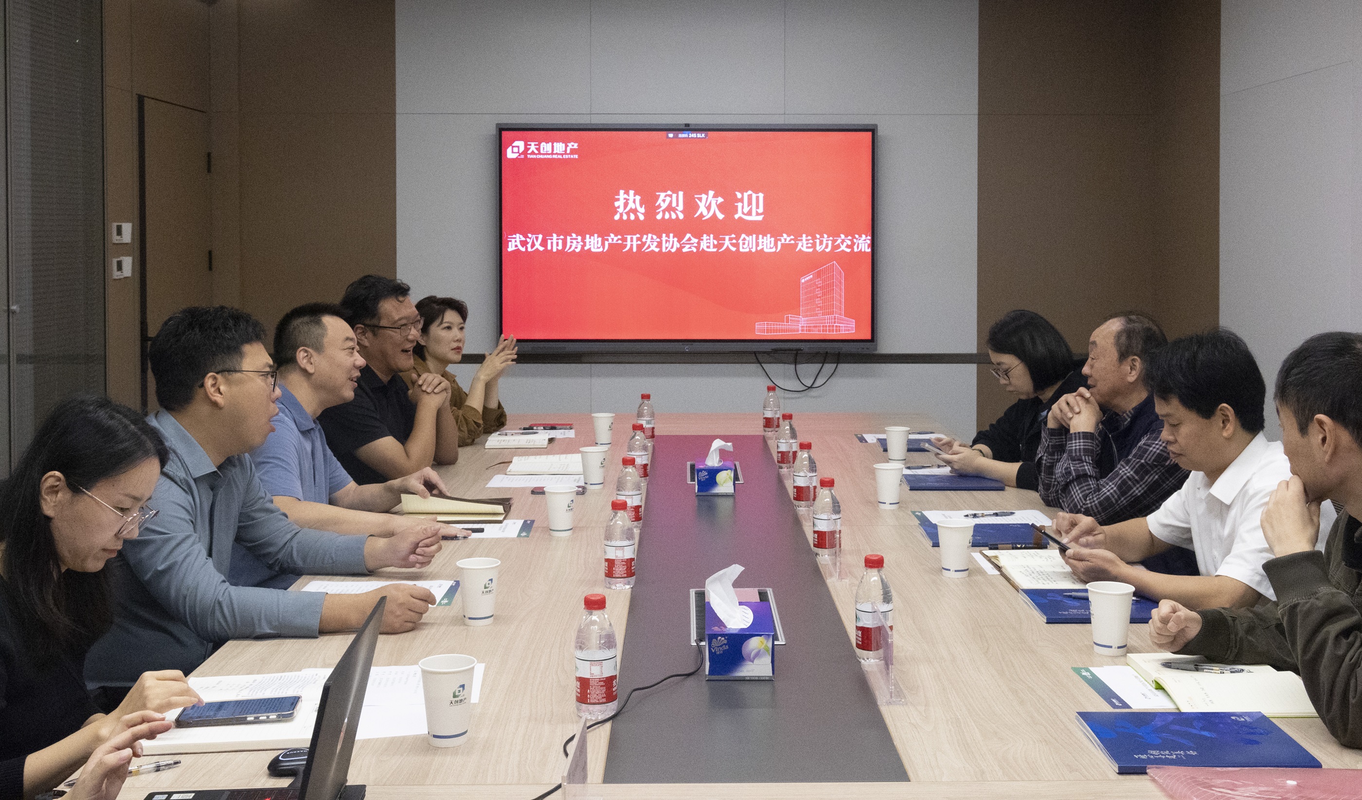 10月16日,武漢市房地產(chǎn)開發(fā)協(xié)會(huì)會(huì)長(zhǎng)張漢培一行赴漢陽(yáng)市政天創(chuàng)地產(chǎn)開展走訪交流活動(dòng)。漢陽(yáng)市政常務(wù)副總經(jīng)理、天創(chuàng)地產(chǎn)董事長(zhǎng)錢濤,天創(chuàng)地產(chǎn)總經(jīng)理李軍偉等陪同交流。